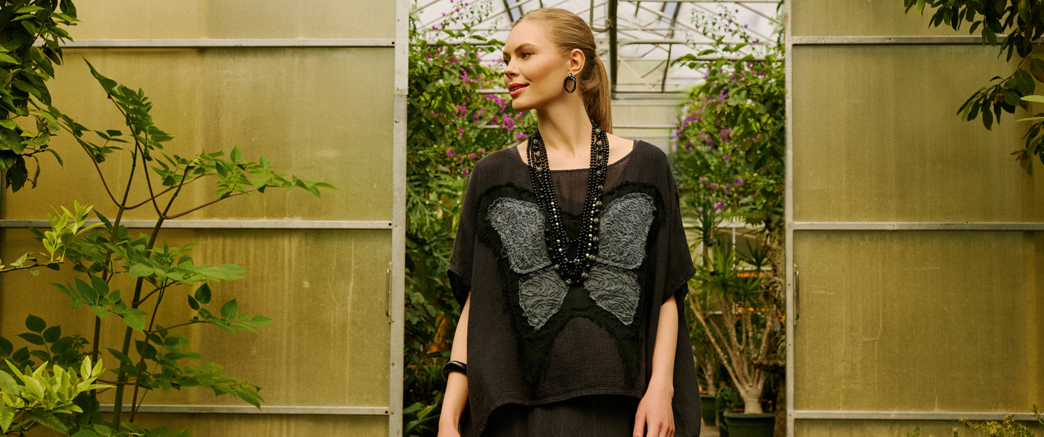 Leinentunika aus Graphit-Gaze mit zwei TaschenLeinentunika aus Graphit-Gaze mit zwei Taschen- Regulärer Preis