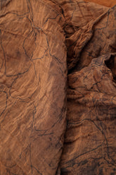 Ein brandneues Design aus weich geknitterter Seide mit Marmormuster in einem tiefen, antiken Kupferton. Der fließende Wasserfallausschnitt und die lockere Silhouette machen es ideal für Lagenlooks im Frühherbst oder winterliche Outfits. Leicht, atmungsaktiv und mühelos elegant.