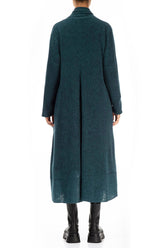 Lange, offene Strickjacke aus blaugrüner Wolle
