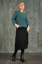 Dieser Rock zeichnet sich durch seine elegante Silhouette und bequeme Passform aus und ist damit die perfekte Wahl für Ihre täglichen Ausflüge und Termine. Er ist aus weicher schwarzer Baumwolle gefertigt, hat Seitentaschen und eine leichte Ballonform in Midilänge. Der elastische Bund sorgt dafür, dass Sie sich entspannt fühlen.