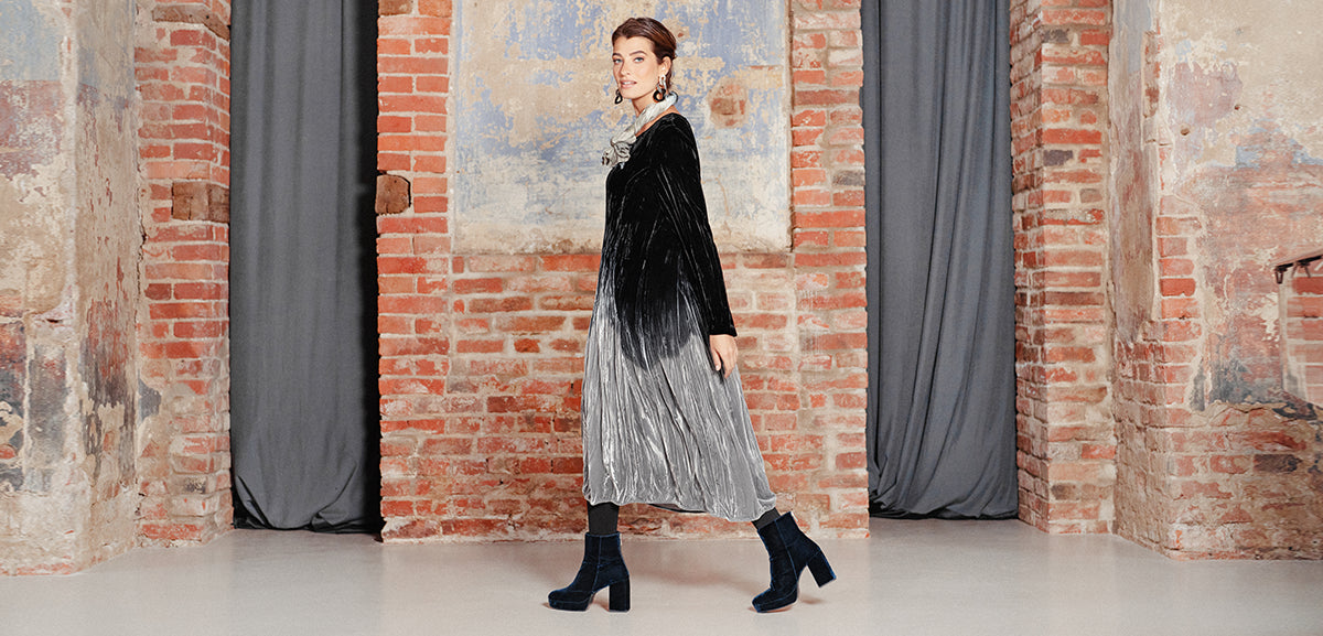 Festliche Tunika aus Seidensamt mit Devoré-Punkten und zwei TaschenFestliche Tunika aus Seidensamt mit Devoré-Punkten und zwei Taschen- Regulärer Preis
