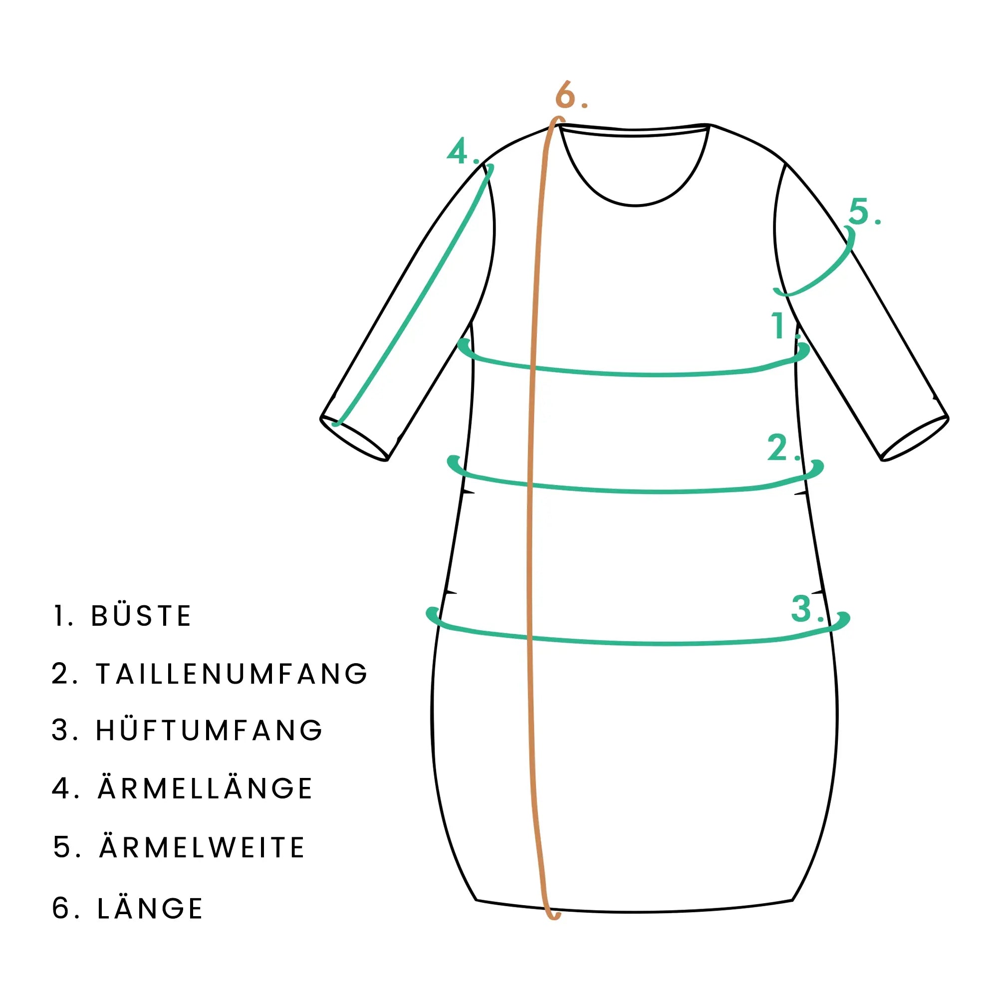 Größe | Buste (CM) | Taille (CM) | Hüfte (CM) | Ärmellänge (CM) | Ärmelbreite (CM) | Länge (CM) |