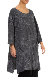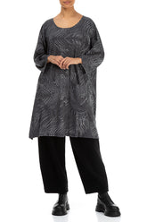 Feather print on soft and stretchy cotton brings lightness, comfort, and elegance into your colder season appearance. Natural, below hips length, loose fitting tunic fits perfectly and is great to wear for your every day or for special occasions.