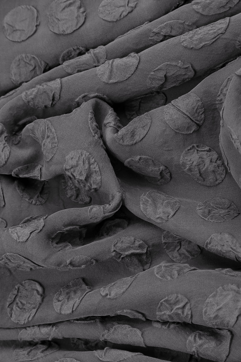 A statement in texture and colour, this dress is crafted from lustrous silk with a distinctive bubble finish. The square neckline frames the collarbone elegantly, while the gently flared silhouette flows into a graceful length. Light and fluid, it moves beautifully with every step, making it perfect for both refined daytime wear and evening occasions.