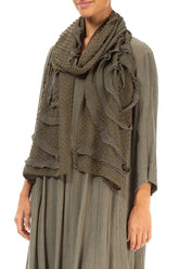 The lightweight silk scarf in a warm shade, beautifully textured with cotton dots and frilly flower appliqués, is soft, breathable, and gentle to the skin. Because of the versatile hue, the scarf perfectly matches dresses and tunics.