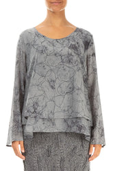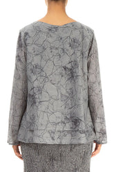 V-Neck Layered Silver Marble Silk Cotton Blouse