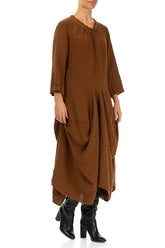 Draped Aged Copper Linen Dress
