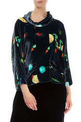Cowl Neck Fairy-Tale Stretch Silk Velvet Blouse