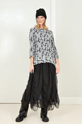 The elegant, subtle cowl neck is always a favourite for the colder seasons, especially this one, crafted from a unique, crinkled, stretchy, and luxurious circle silk. Its tailored silhouette and cropped sleeves add a feminine touch while keeping it practical and versatile.