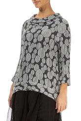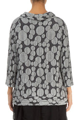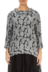 Cropped Sleeves Silver Circle Silk Linen Blouse