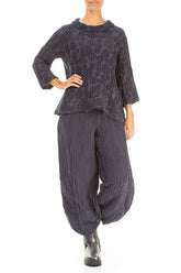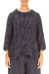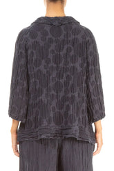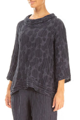 Cropped Sleeves Slate Blue Circle Silk Linen Blouse