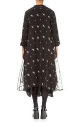 Crafted from fine silk chiffon, this jacket is adorned with scattered embroidered petals that add a subtle, feminine charm. Its sheer, softly flowing silhouette creates graceful movement with every step, offering an effortless layer that elevates both everyday looks and special occasion outfits. Light, romantic and versatile, it is the perfect finishing piece when you want elegance without heaviness.