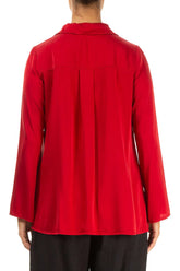 Flared Back Cherry Red Silk Shirt