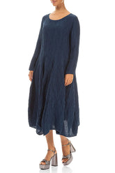 Designed with a flattering flare silhouette and a refined crinkled texture, this stylish navy hue dress offers understated elegance. Made from a luxurious blend of silk and linen, it provides a comfortable, breathable feel that’s perfect for all-day wear.