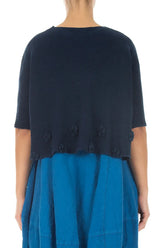 Flowers Decorated Navy Linen Jumper