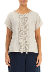 Discover a blouse that brings softness and quiet detail into your everyday dressing. The breathable linen drapes lightly, while the central ruffles introduce gentle movement and a refined focal point without overwhelming the silhouette. Style it with tailored trousers for work, soften it with skirts for daytime outings, or wear it loosely with linen pieces for relaxed elegance.