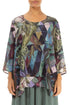 Layered 3/4 Sleeves Art Mosaic Textured Silk Blouse