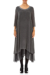 Two extra light silk layers, magical dotty fabric, elegant shape, and flowy hem is a perfect combination for a sophisticated party dress.