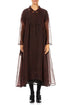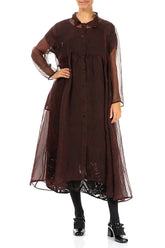 This dark cherry red jacket is crafted from airy silk chiffon and decorated with an artistic abstract print that adds depth and movement without resembling animal patterns. Its fluid silhouette and sheer finish create an effortlessly sophisticated layer, ideal for special occasions or elevating everyday looks.