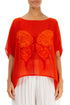 Loose Butterfly Flame Orange Mesh Silk Blouse