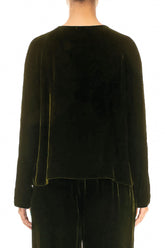 Minimal Button Forest Mist Silk Velvet Jacket