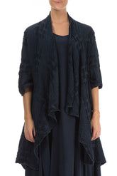 Veste en lin bleu marine foncé à texture tissée ouverte
