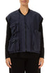 Un gilet en coton bleu ardoise contemporain, idéal pour la superposition. Doté d'une fermeture éclair et de trois poches fonctionnelles, il allie lignes épurées et praticité. Confectionné en coton doux et structuré, ce modèle polyvalent conjugue fonctionnalité au quotidien et détails sculpturaux subtils, ce qui en fait une pièce élégante à porter aussi bien avec une tenue décontractée qu'avec un ensemble superposé.