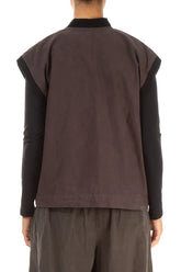 Un gilet en coton marron forêt contemporain, idéal pour la superposition. Doté d'une fermeture éclair et de trois poches fonctionnelles, il allie lignes épurées et praticité. Confectionné en coton doux et structuré, ce modèle polyvalent conjugue fonctionnalité au quotidien et détails sculpturaux subtils, ce qui en fait une pièce élégante à ajouter à toutes vos tenues, décontractées ou superposées.