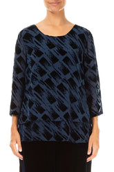 Chemisier en velours de soie bleu royal à effet dévoré superposé