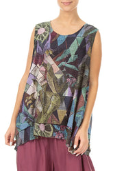 Chemisier sans manches en soie texturée à motif mosaïque artistique superposée
