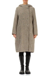 Ce manteau croisé à capuche est conçu dans une silhouette ballon, ample, confortable et élégante. Confectionné en laine vierge à motifs dans des tons beiges, il est entièrement doublé, ce qui permet de le superposer facilement. Portez-le sur des ensembles, robes et pantalons, sentez-vous au chaud et ayez l'air élégant.