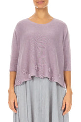 Pull en lin lilas orné de fleurs