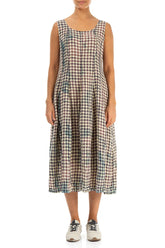 Robe bouffante sans manches en lin à carreaux vintage