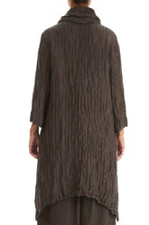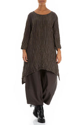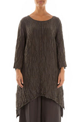Tunique en lin et soie marron forêt froissée avec col amovible