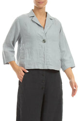 Veste Blazer en Lin Gris Argenté à Bouton Unique