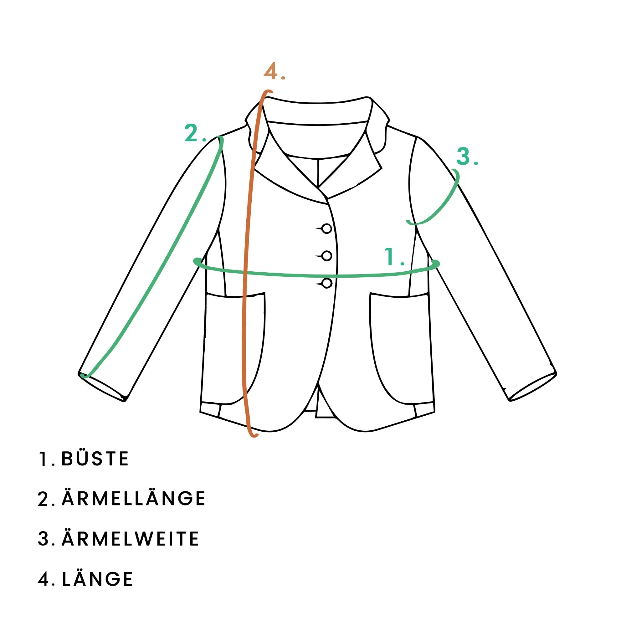 Größe | Buste (CM) | Ärmellänge (CM) | Ärmelbreite (CM) | Länge (CM) |