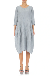 Ballongeknittertes silbergraues Seidenleinenkleid