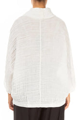 Bluse aus cremefarbenem Seidenleinen mit Wasserfallausschnitt und Kreismuster