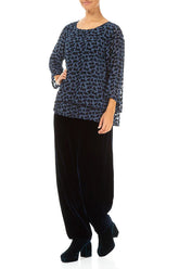 Bluse aus königsblauem Seidensamt mit Devoré-Muster