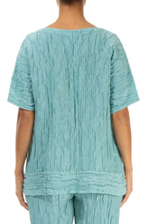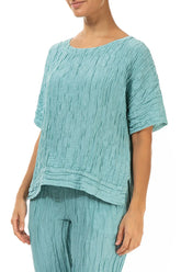 Bluse aus mintfarbenem Seidenleinen mit horizontalem Saum und Knittereffekt