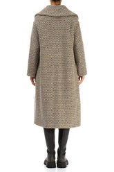 Dieser elegante Mantel ist wunderschön gefertigt und hat einen Stil, den Sie jahrelang tragen werden. Er ist aus hochwertiger, weicher, gemusterter Schurwolle gefertigt und vollständig gefüttert. Er hat eine leicht lockere Passform, die sich bequem über mehrere Lagen tragen lässt. Der breite Kragen kann an kälteren Tagen höher zugeknöpft werden.