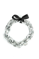 Skulpturale Holzglieder in einem sanften Silberton bilden eine Halskette, die selbst schlichte Outfits im Nu aufwertet. Die Schlaufen schwingen sanft mit jeder Bewegung, fangen das Licht ein und bewahren dabei einen wunderschönen, dezenten Mattglanz. Ein geschmeidiges Lederband sorgt für Kontrast und Tragekomfort, während der Druckknopfverschluss einen einfachen und sicheren Sitz gewährleistet. Ein vielseitiges Schmuckstück, das perfekt zu minimalistischen Kleidern, Strickwaren oder Blusen mit klaren Linien passt.