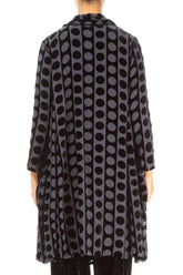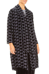 Dieses luxuriöse, offene Midi-Jacket ist das eleganteste Kleidungsstück der Saison. Es ist aus halbtransparentem Devoré-Seidensamt gefertigt und vollständig mit reiner Seide gefüttert. Mit seinem verlängerten, schalartigen Vorderteil fällt es anmutig und lässt sich sowohl über Seidenkleidern als auch über eleganten Hosen tragen – für einen Hauch von Glamour, der jedem Outfit mühelos das gewisse Etwas verleiht.