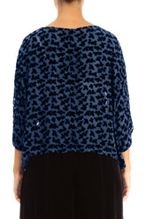 Kastenförmige Bluse aus königsblauem Seidensamt mit Devoré-Muster