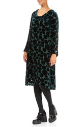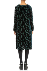 Kleid aus Samt mit Wasserfallausschnitt, verziert mit Devoré-Blasen und Pfauenmotiven
