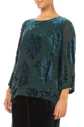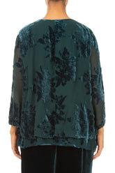 Lagenbluse aus Devoré-Seidensamt mit Pfauenblumenmuster