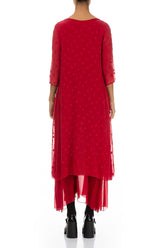 Lagenkleid aus gepunkteter, kirschroter Seide