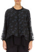 Locker geschnittene, kurze, schieferblaue Seidenjacke mit Blasenmuster