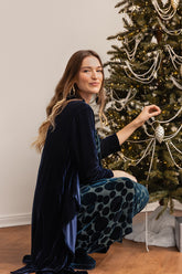 Der Inbegriff von Eleganz ist eine lange, luxuriöse, offene Jacke in fließender Maxilänge aus hochwertigem, weichem Seidensamt – ein vielseitiges Kleidungsstück, das auf unzählige Arten gestylt werden kann.