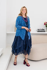 Diese leichte und ausdrucksstarke Jacke verleiht jedem Lagenlook mühelose Eleganz. Der luftige Seidenstoff fühlt sich atmungsaktiv und federleicht an und lässt die Jacke sanft um den Körper fallen. Ob über fließenden Seidenkleidern, Blusen oder auch legereren Kleidungsstücken getragen, sie ist ein vielseitiges Kleidungsstück, das sich sowohl für festliche Anlässe als auch für elegante Alltagsmomente eignet.